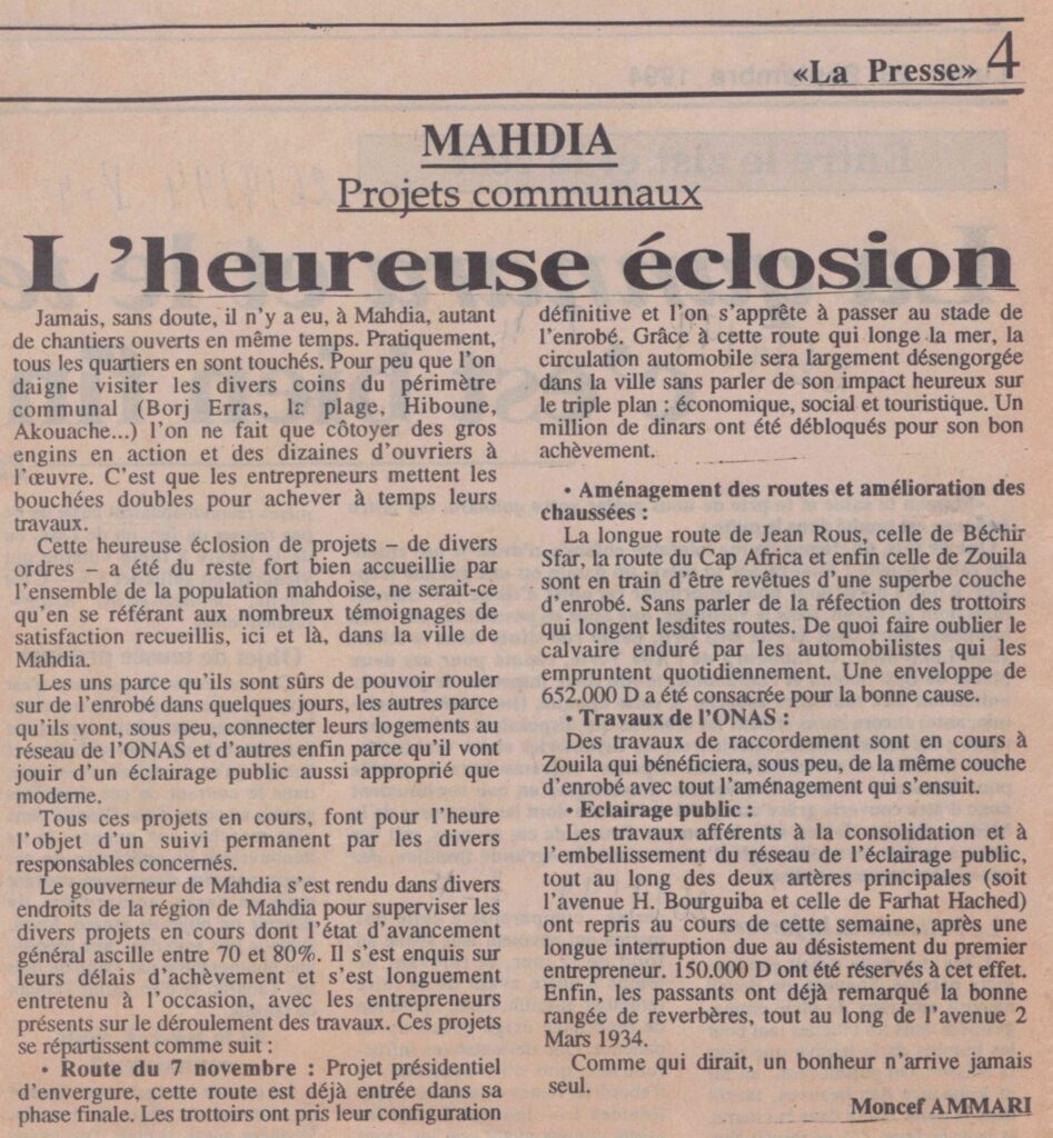 Mahdia célèbre le centenaire de sa mairie 08-03-1987