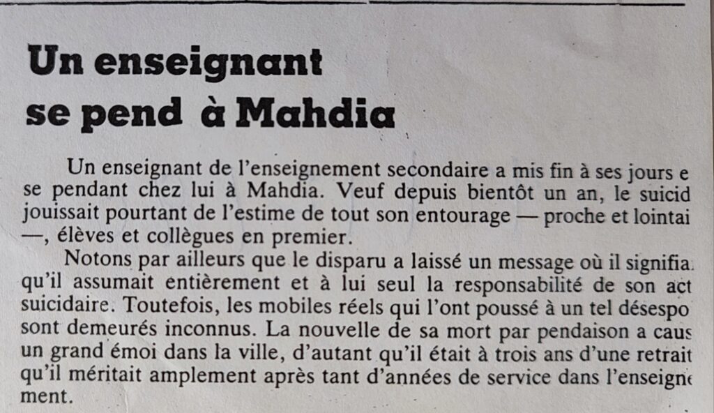 Un enseignement se pend à Mahdia 17-02-1990