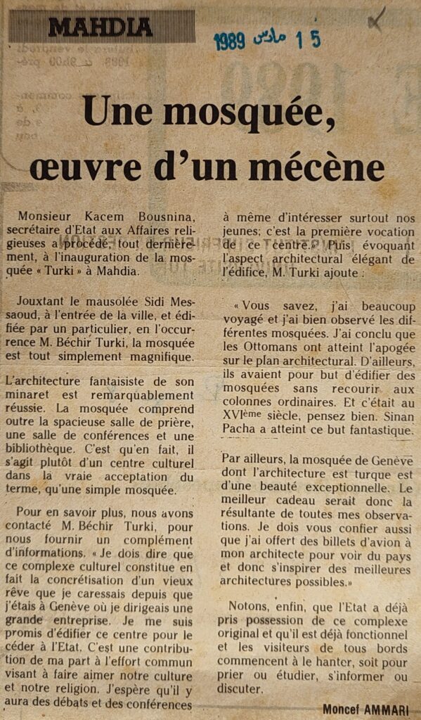 Une mosquée œuvre d’un mécène 15-03-1989